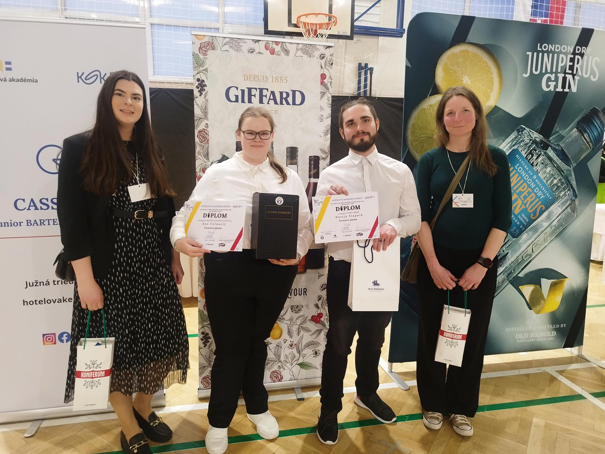 Naša dijaka Ana in Nastja sta na mednarodnem tekmovanju v mešanju pijač CASSOVIA junior BARTENDERS CUP 2026 v Košicah na Slovaškem, ki je potekalo 16. marca 2026, med kar 56 tekmovalci osvojila bronasti diplomi.
