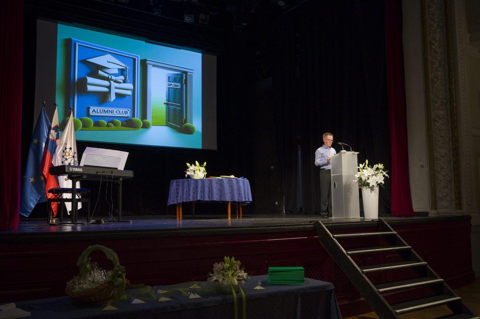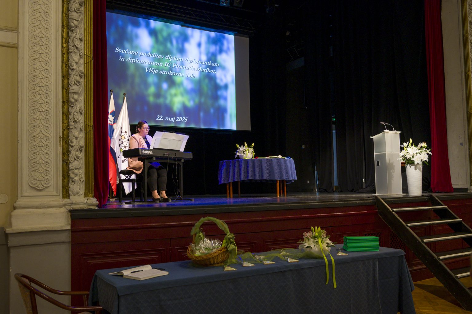 Slavnostni govornik je bil predsednik Kluba diplomantov, gospod Stanko Vorih, ki je z izbranimi besedami spodbudil diplomante k nadaljnjemu strokovnemu razvoju in povezovanju. Program sta odlično vodili študentki Ema in Evelyn, glasbeno pa ga je obogatila študentka Zala s svojo izvedbo.